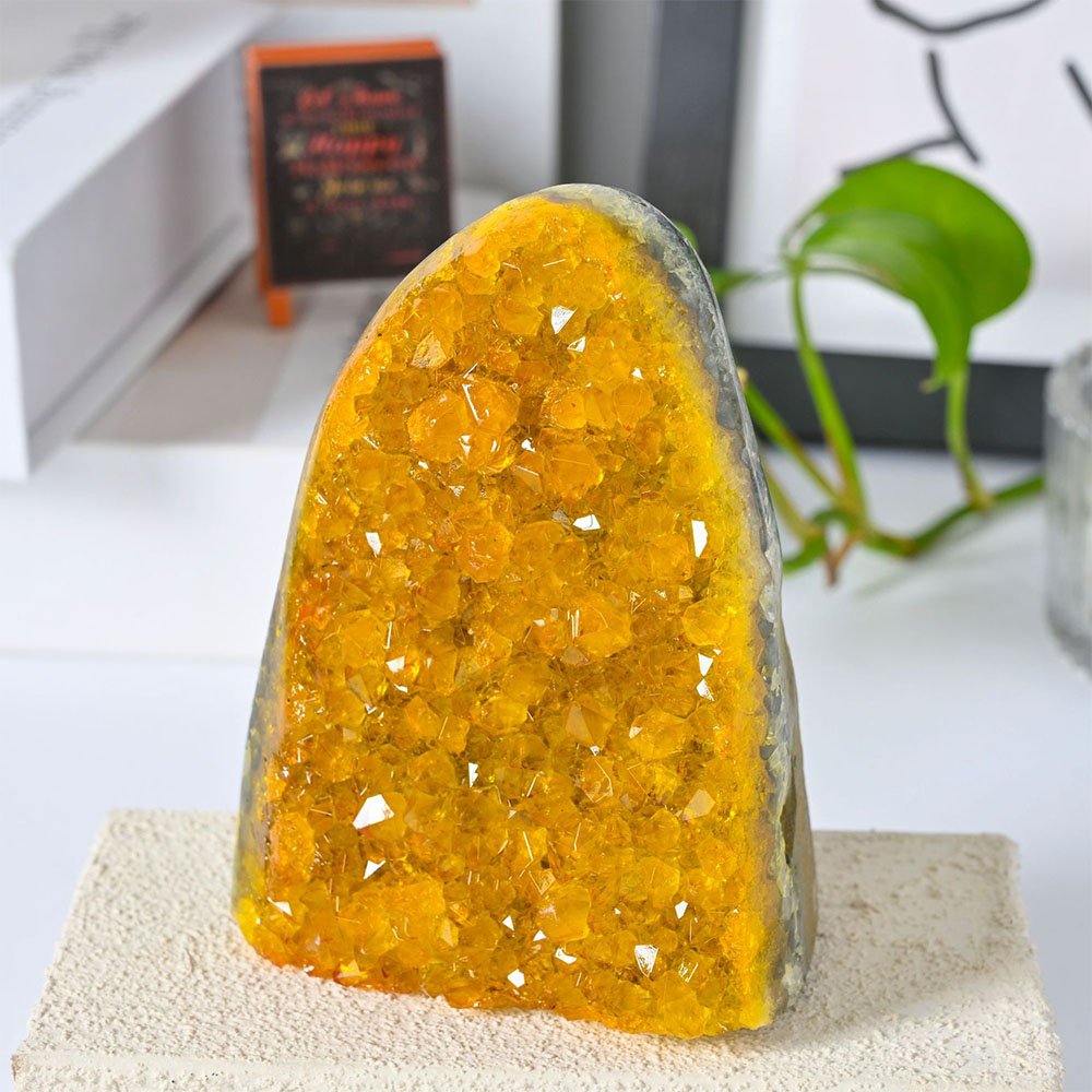 This yellow crystal geode is a refined decorative piece designed to enhance the atmosphere of office and home workspaces. Its warm yellow tone is often associated with positivity, clarity, and focus, making it a popular choice for desks and shelves. Placed on a workspace, it can serve as a visual reminder of balance and motivation. Yellow crystal decor is especially suitable for professionals, creatives, students, and anyone who spends long hours at a desk and values an organized, uplifting environment. Ideal for modern offices or calm home interiors.